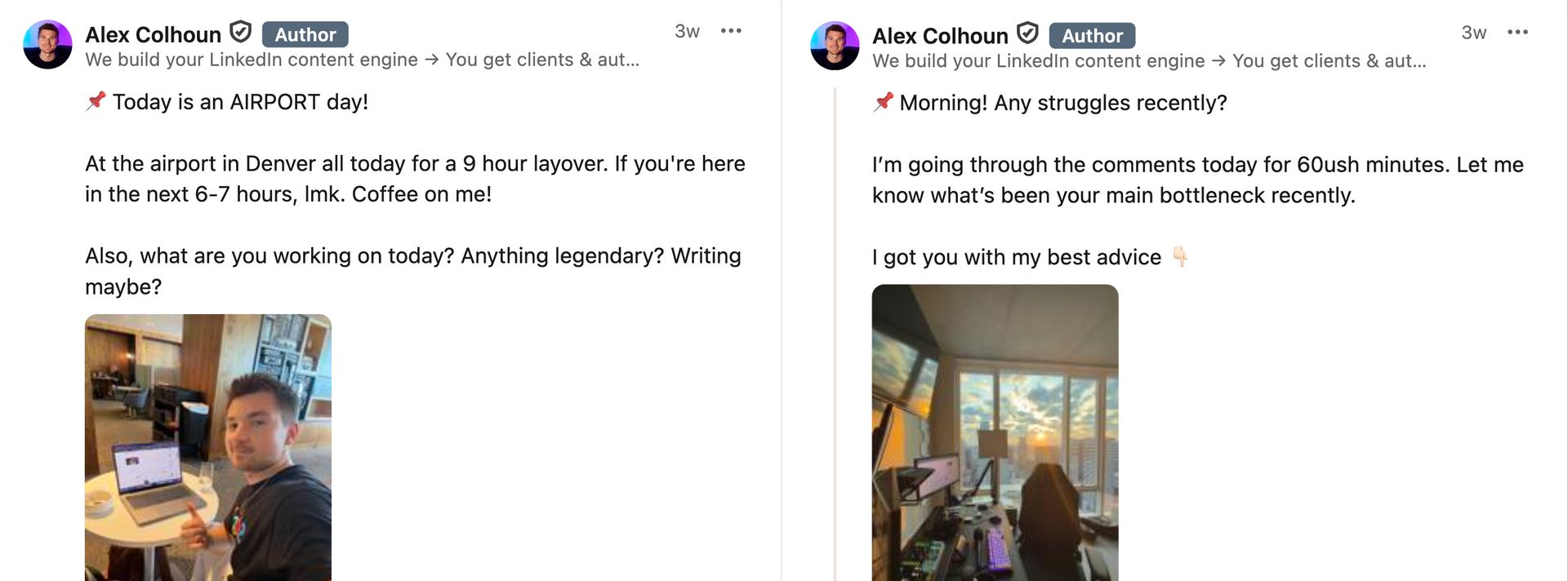 The style of post that is performing better than 99% of my content is what I call “The 3 Piece” personal image post.