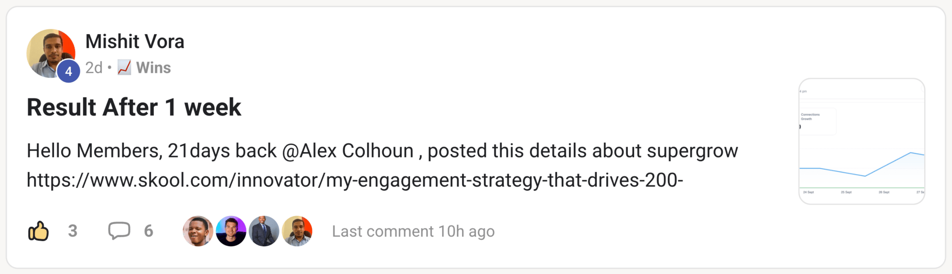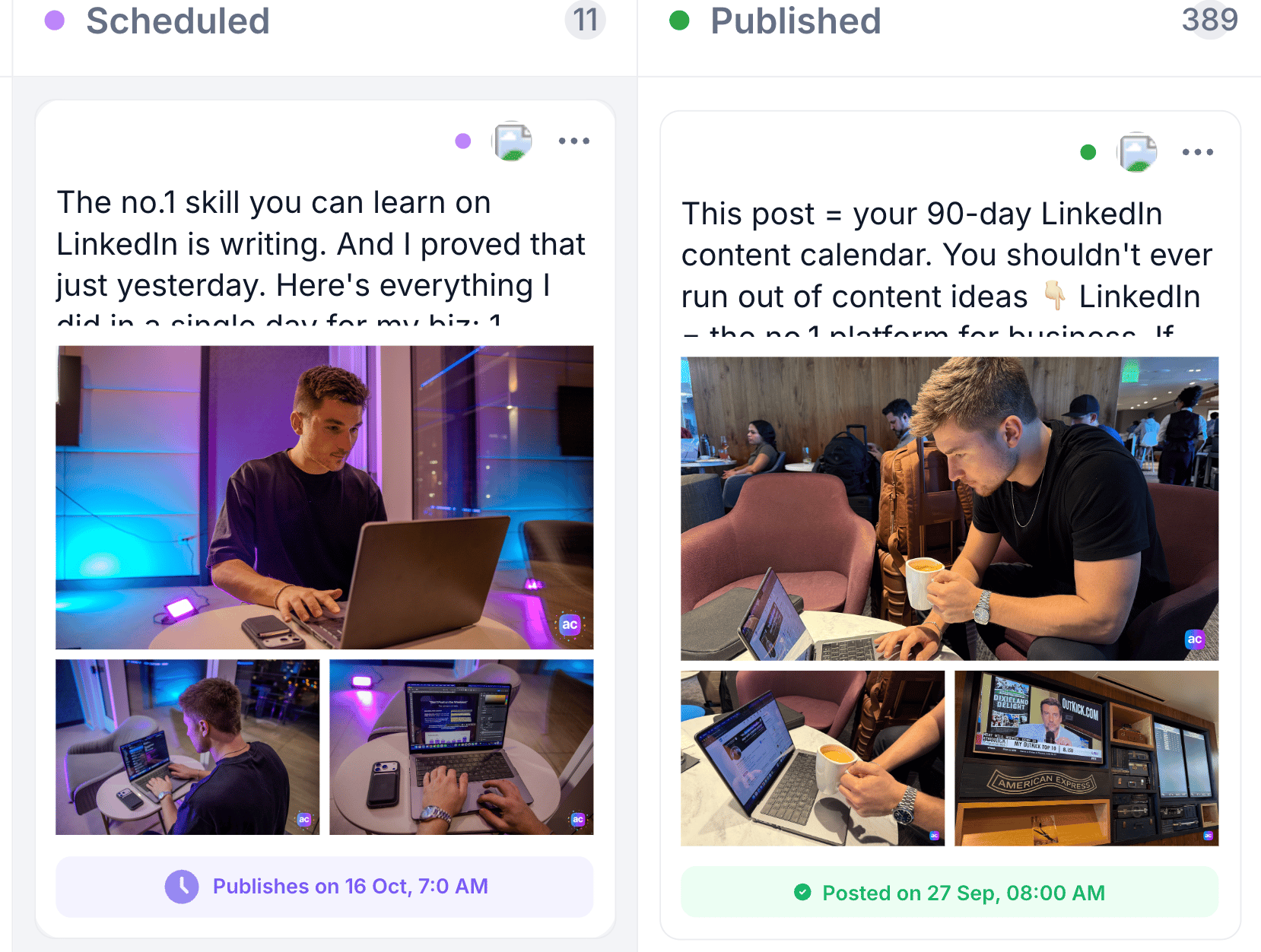 This week, Mishit saw an engagement increase of 525% in his LinkedIn content just from using our weekly systems (and still rising). Pretty epic stuff.